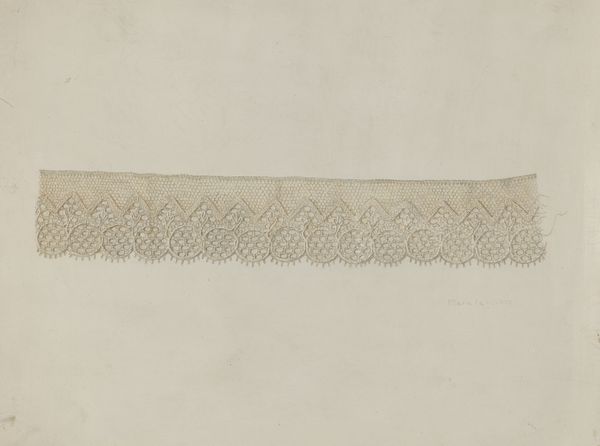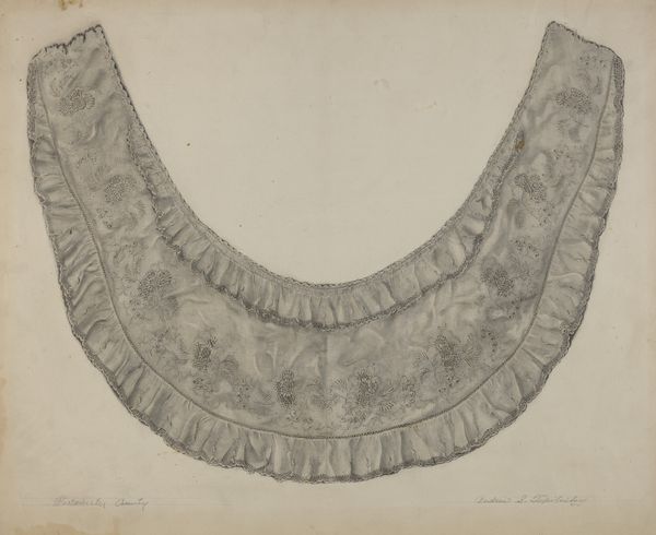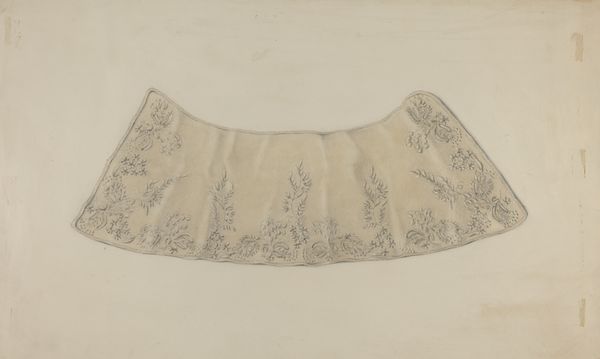 Editor: This is Eleanor Gausser's "Wedding Handkerchief," created around 1939. It seems to be a drawing, maybe pencil and watercolor, of an actual handkerchief. The details of the floral embroidery are lovely. What strikes me is the delicate, almost ephemeral quality. How would you interpret this piece? Curator: Immediately, my focus shifts to the handkerchief itself as a material object. The choice to render it in pencil and possibly watercolor raises questions about access to materials. Was Gausser documenting a family heirloom because she lacked the resources for other forms of artistic expression? This also intersects with gendered labor; needlework was often considered a domestic craft, separate from "high art." Editor: So, you’re suggesting the medium itself is key to understanding its context? Curator: Precisely. Think about the labor involved in creating an actual embroidered handkerchief, and then consider the labor of replicating that in drawing. The "Wedding" in the title leads us to think about ritual, performance, and the social expectations surrounding marriage and women’s roles. The handkerchief then becomes more than a simple object. It's a symbol laden with meaning through the means of its making and how that meaning can be recreated by a pencil. Why document it rather than simply owning the object? Editor: I never thought of the artistic choice reflecting back on the material's own production in that way! I’d focused only on its potential sentimentality, but it's fascinating to see the social context through its materials and methods of representation. Curator: Exactly. The "preciousness" isn’t inherent but assigned through a nexus of social and material conditions. And considering the artist’s position within those structures opens the artwork up to so many other insights. Editor: It gives the piece a whole new layer of meaning. I'll definitely consider the means of production in other works moving forward.