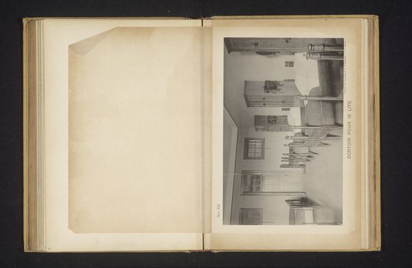 Curator: Before us, we have an intriguing piece: a gelatin-silver print photomontage attributed to V. Wolfenstein, titled "Vergaderruimte voor officieren in een kazerne van de Svea livgarde in Stockholm," dating from before 1891. Editor: It's interesting how the monochrome palate lends itself to an atmosphere of somber duty, even austerity, isn't it? It seems as though you could almost feel the weight of obligation hanging in the air of the space shown. Curator: Absolutely. Consider the portraits adorning the walls; they serve as symbols of authority and legacy, constantly reminding these officers of the burdens they shoulder. This points toward the visual language around the military, not merely for order but to reinforce notions of national identity. Editor: It strikes me that portraiture of forebearers almost certainly carries with it a specific visual symbolism that seeks to both remind and warn those serving beneath them of their duty and possible sacrifice for king and country. Curator: Precisely. Moreover, it’s telling to observe a near-clinical approach in how such a space is represented – devoid of personal warmth or softness. I’d argue such environments cultivated very specific ideals, especially pertaining to masculinity. Editor: Certainly. The photograph's very composition implies hierarchies; visual symbols of national identity or royal portraiture, even within these interior settings, dictate a culture meant to encourage military or patriotic virtue and steadfast service. The chairs are all facing forward in a very straight and very aligned sort of formation. It speaks of unity of thought but also unity of power and command. Curator: Which ultimately, served to maintain systems that prioritized control and order – something the rigid seating arrangement in the room speaks volumes about, as you've pointed out. A chilling visual expression of power dynamics if I may say so myself. Editor: An eerie stillness indeed that lingers long after a look at the image; an excellent reminder of visual symbols as conveyors of national identity, authority, and the expectations placed upon a nation’s defenders. Thank you.