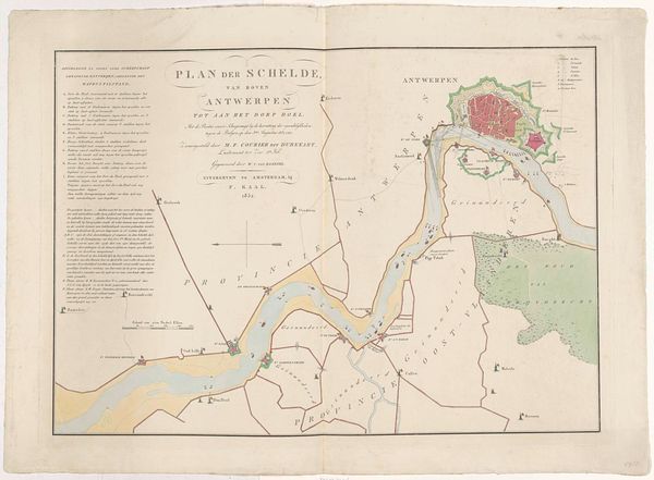 Curator: This print from 1832 to 1833, titled "Aanvang van het beleg van de Citadel van Antwerpen door het Fransche leger in December 1832," captures the commencement of the siege of the Citadel of Antwerp by the French army. It's currently housed at the Rijksmuseum. Editor: It has a strangely calming effect for something depicting the beginning of a siege, wouldn't you agree? The pale inks, etching, and precise lithography almost abstract the impending conflict into something like an ordered garden. Curator: In thinking about its time of creation, such order was often valued and prioritized, specifically, how prints like these served to frame and disseminate narratives favorable to emerging powers. Editor: Right, but let’s focus on how this map would have functioned. The material itself speaks volumes. Look at the intricacy of the etched lines. It clearly denotes territories, planned routes, and likely troop movements. Who was this information intended for, and what labor was involved in producing copies? Curator: Well, the subject matter speaks to a significant moment of geopolitical shift and renegotiation of national identities within Europe. Consider this piece in relation to the political upheaval of the 19th century, specifically the Belgian Revolution of 1830, which led to Belgium’s separation from the Netherlands. Editor: Absolutely. The print uses line and perspective to exert a kind of cartographic authority over territory, but consider the paper, the inks... they had material and strategic value as commodities. The act of creating this image, therefore, isn’t just about memorializing history but shaping a certain, most likely, pro-French understanding of the siege for consumption by a certain social class. Curator: It shows how representation can solidify power, turning conflict into an aesthetic product—but the key takeaway for me is to use history and intersectionality to create multiple narratives of an important political time for European countries like France, Belgium, and the Netherlands. Editor: For me, the material transformation involved here makes you ponder how war turns everything else into just more things. From gunpowder production to the uniforms worn, it transforms not just borders but the physical makeup of societies.