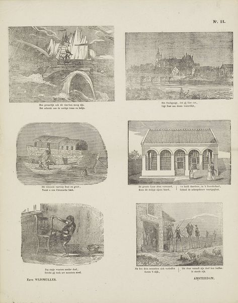 Erve Wijsmuller created this undated print with etching, showing various scenes. The scenes presented here hint at some of the major social and cultural tensions of the time. The most striking aspect is perhaps the contrast between images of local Dutch life and imagery related to colonialism, which speaks to the Netherlands' economic and political investments abroad. By juxtaposing images of Dutch buildings alongside images of colonial life, Wijsmuller seems to ask the viewer to compare and contrast these different worlds. These references speak to the complex and often contradictory nature of Dutch society at this time, and prompt the viewer to consider the relationship between local and global concerns, and the social conditions that shape the production and reception of art. To understand this piece better, one might research the history of Dutch colonialism during this period or examine popular imagery of colonial life in the Netherlands. Such research emphasizes that the meaning of art is contingent on its social and institutional context.