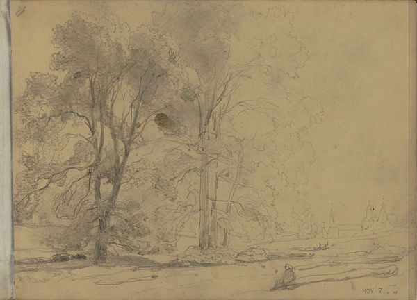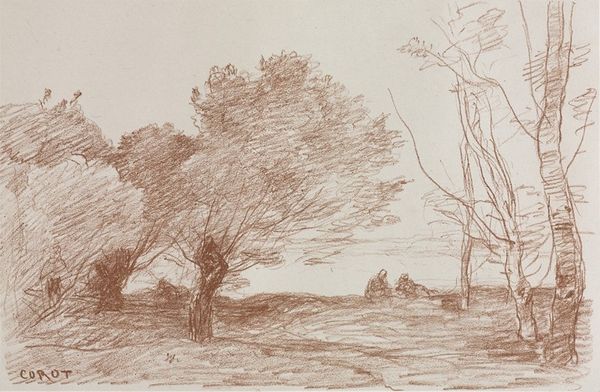 Camille Corot rendered this pencil on paper artwork, “Willows and White Poplars,” during the 19th century. This was a period of massive social upheaval and industrialization, which deeply affected artistic sensibilities. Corot’s choice of landscape is not accidental. It’s a deliberate turn away from the urban scenes that were increasingly dominating life. The sparse figures, rendered without distinct features, are dwarfed by the natural world, and serve to emphasize the human connection with nature. There is a certain melancholic tone. Perhaps it’s the subdued palette, or the solitary figures, but the work evokes a feeling of loss and nostalgia. It’s as if Corot is capturing a fleeting moment, aware of the inevitable changes that industrialization would bring. Corot's landscapes are a reminder of our fragile relationship with the environment. It's an invitation to consider our place within it, and the emotional weight of its potential disappearance.