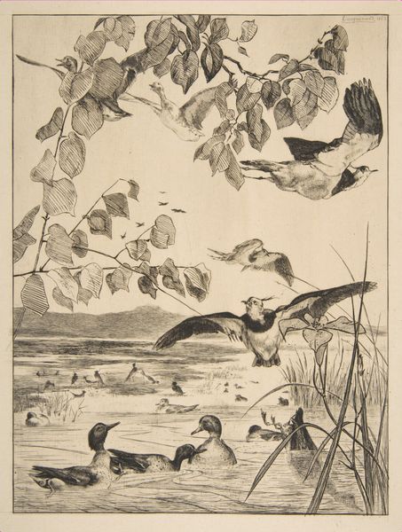Artuš Scheiner created this illustration for "Under Command Of Magic" with an etching technique. Scheiner lived and worked in Bohemia during a time of artistic and cultural revival, deeply rooted in folklore and mythology. Consider the figure at the center, a youthful being surrounded by birds. This image evokes the Romantic concept of the individual's deep connection with nature. It also brings up questions about identity and belonging. The relaxed pose and tranquil gaze suggest a sense of harmony and acceptance. Are we looking at the traditional representation of a fairy tale character, or is Scheiner developing an alternative narrative? The black and white medium enhances the dreamlike quality. It reminds us of the power of stories to shape our understanding of the world. The illustration invites us to reflect on the magic within ourselves and the world around us.