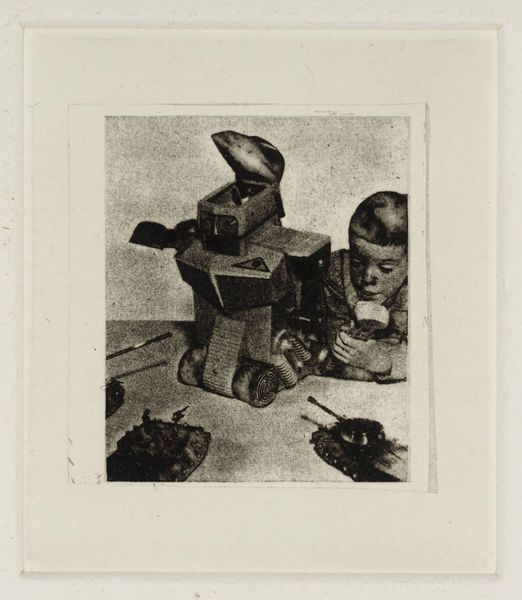 Editor: This is Sir Eduardo Paolozzi's print, "Secrets of Life - The Human Machine and How it Works: Bird." The combination of mechanical shapes and the birds in flight creates such a strange juxtaposition. What do you make of this piece? Curator: It's a collision of the organic and the manufactured, isn’t it? Paolozzi often explored that tension. The birds, traditionally symbols of freedom, seem almost controlled by the geometric framework. Maybe he’s asking if our pursuit of progress is actually caging us. Does it feel that way to you? Editor: I hadn't thought of it that way, but I see what you mean. It's definitely food for thought. Thanks! Curator: Absolutely! It's a puzzle box of meaning, waiting to be opened.