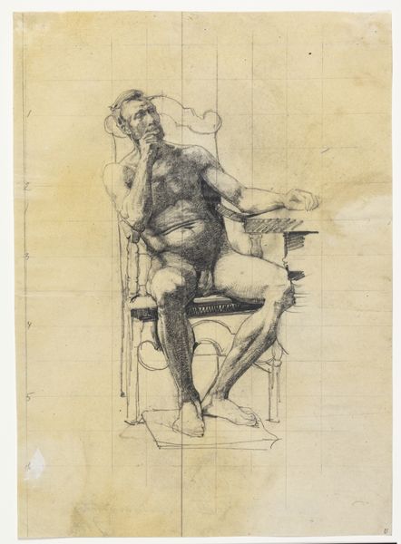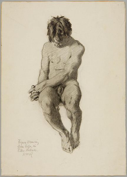 Here we see a preparatory drawing by Carl Bloch, created in the 19th century, a study for his etching 'Man Bathing'. The figure is seated, his posture closed in on itself, hugging his chest. The gesture of crossed arms, clutching at one's self, speaks of vulnerability and a need for protection. This gesture echoes across time, appearing in ancient sculptures depicting mourning figures, their arms crossed in sorrow. We see it again in Renaissance paintings of the Deposition, where Mary cradles the body of Christ. The act of self-embracing is deeply rooted in our collective unconscious, a primal response to emotional distress, yet the context alters its significance. Here, the male nude, exposed and self-contained, prompts reflection on our own fleeting sense of security. The posture's cyclical progression reminds us of the enduring human need for solace, echoing and evolving through art history.