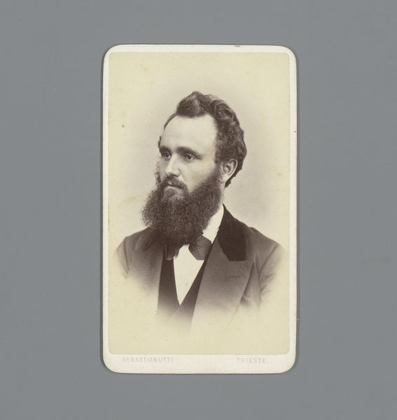 This is a portrait of Jeremiah Gurney by himself, made with albumen silver print. The image draws you in with its tonal range; a study in sepia that softens the sternness typical of photographic portraiture in its time. A close look reveals how Gurney balances light and shadow to create a sense of depth and volume, especially notable in the rendering of his beard. The texture is palpable, almost tactile, which creates an immediate presence. Gurney, as a photographer, was keenly aware of the semiotic power of the portrait. The careful attention to detail and the arrangement of light serve not just to capture a likeness but also to project an image of authority and respectability. This formal approach aligns with the broader cultural codes of the 19th century, where portraiture served to solidify social status. Notice how the light catches the edge of his jacket, creating a sharp line that anchors the composition. It's these formal considerations that elevate the photograph beyond a mere recording, into a carefully constructed representation.