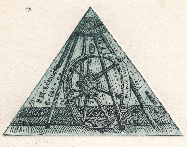 Editor: Woah. Talk about a mood! I’m getting a slightly menacing, occult vibe from this piece. Is it just me? Curator: Not at all. What we are looking at is titled “Theosophical Emblem with a Roaring Dog’s Head," a woodcut print produced around 1895 by the Dutch artist Mathieu Lauweriks. As the title suggests, the artist here dives into Theosophy, which became influential in the symbolism of this period. Editor: Symbolism—that makes sense. The dog's head really jumps out from the center, like some mythological beast staring you down. And those geometric shapes all around it—very art nouveau! Curator: Indeed. Lauweriks' exploration of geometric forms, specifically within a Theosophical framework, suggests a search for underlying universal principles, for harmonic design principles. We might also relate his print to broader fascinations of that era around esoteric and occult ideas, often used by artists and thinkers to contest the establishment and imagine new orders of meaning and expression. Editor: So, like, challenging the normal, the usual ways people saw the world, but through gnarly dogs? The mouth especially—there's this almost cartoonish exaggeration. Curator: You bring up an interesting point about that fierce, howling image, as though challenging a rational or empirical outlook, reclaiming older mythic traditions, or maybe channeling hidden subconscious drives through something as seemingly safe as… well, you know, a “dog." Editor: It kind of makes me wonder what kind of statement Lauweriks was trying to make by fusing that image and Theosophy? Was it something revolutionary, or more introspective? Curator: That’s an open question, still—a key point in any critical approach! I see him as responding to the cultural milieu while contributing to conversations about society and, crucially, the search for meaning through alternate frameworks that engage the spiritual but go far beyond organized religions. Editor: Well, I dig it, gnarly dogs and all! It’s a fantastic collision of ideas and images that, frankly, feels a little timeless even now. Curator: I agree; this intersection of personal angst, counter-cultural thought, design theory, and striking visual form resonates beyond the artwork's original time.