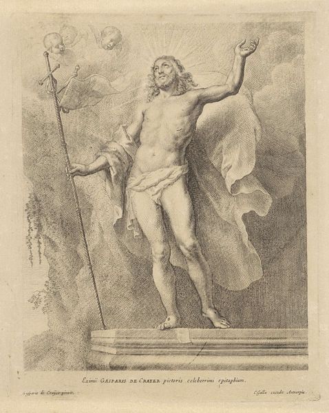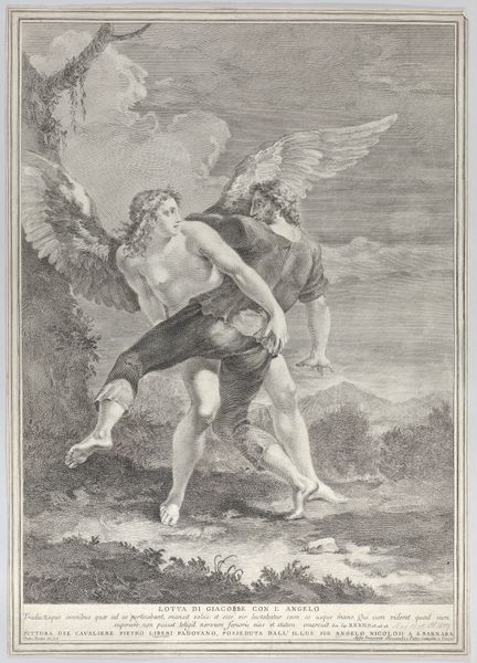 Christian Schussele's drawing, "Prometheus Bound," captures the tragic hero through careful composition and stark contrasts. Prometheus is chained to a rock, his agonized form rendered with meticulous detail. The rough texture of the stone and the turbulent sea evoke a sense of despair. Schussele uses line and shading to emphasize the tension between Prometheus's muscular body and the unyielding chains, a symbol of his defiance against the gods. The looming presence of the eagle, pecking at his liver, introduces a brutal realism. This stark image invites an understanding of power, suffering and rebellion through a formal vocabulary that balances classical ideals with raw, emotional expression. Note how Schussele uses light to highlight Prometheus's body and the eagle, directing our focus to the central conflict. The drawing’s monochrome palette further intensifies the drama, stripping away any distraction and focusing on form and texture. In its formal construction, "Prometheus Bound" transforms classical myth into a potent study of human endurance.