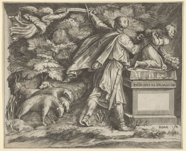 Crispijn van de Passe the Younger created this engraving, "Prometheus Creates the First Man," during a time of shifting worldviews and increased interest in classical mythology. The image presents us with a scene where Prometheus animates the first human, his body surrounded by animals both wild and domestic. The sun and the moon look down on the scene. Van de Passe, working in the 17th century, taps into the enduring fascination with creation myths, exploring questions of human origins and our relationship to the natural world. Consider the emotional weight of this scene. There’s a tension between the power of creation and the vulnerability of the recumbent figure. The presence of animals adds another layer, suggesting a complex relationship between humanity and the natural order. Van de Passe is not just illustrating a myth; he's inviting us to contemplate what it means to be human. The print reminds us to consider the enduring power of myth to reflect our hopes, fears, and ongoing attempts to define our place in the world.