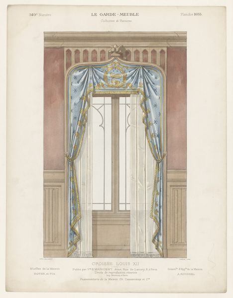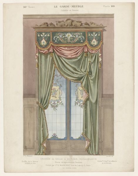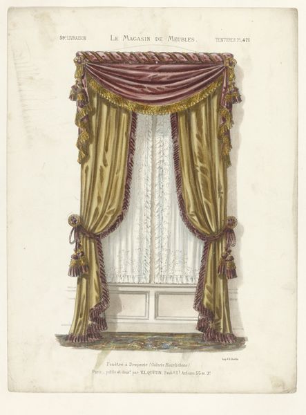 This print, "Venster met gordijnen," presents an elaborate window display, its design attributed to the Louis XIV style. The composition is dominated by an arrangement of curtains and drapery, rendered in shades of pink and green. Notice how the artist balances symmetry with asymmetry, the ornate valance contrasting with the simplicity of the window. This artwork challenges the notion of mere decoration by elevating interior design to an art form. The meticulous rendering of textures and patterns, combined with the subtle play of light and shadow, transforms the window into a stage. Here, the curtains become actors that destabilize the boundary between interior and exterior. Ultimately, this print invites us to consider how objects of everyday life, when carefully composed, can convey meaning, engage with history, and challenge our perceptions of space and form. It reminds us that art resides not just in what is depicted, but in how it is depicted.