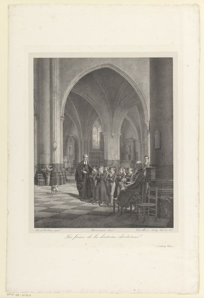 Nicolas Chapuy’s “View of the Cloister of the Cathedral of Mainz” is a lithograph, one of a series from Allemande. Lithography is a printmaking process using a flat stone or metal plate on which the image areas are worked using a greasy substance so that the ink will adhere to them, while the non-image areas are made ink-repellent. The image shows the interior of a cathedral cloister, with vaulted ceilings and intricate carvings. Chapuy’s masterful use of lithography captures the texture and weight of the stone architecture, while the rendering of light and shadow creates a sense of depth and atmosphere. Lithography democratized image production, and it was often used for mass reproduction, and commercial purposes. Here, though, Chapuy has elevated the medium, creating a work that is both technically impressive and aesthetically pleasing. The image offers us a glimpse into a specific time and place, but also speaks to the broader history of printmaking and its relationship to art, craft, and industry.