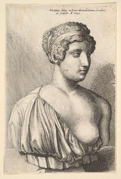 Giuseppe Longhi created this engraving titled "Bust of a Young Woman with a Turban" in the late 18th or early 19th century. At that time, turbans were a fashionable item, associated with exoticism and the Orient. Yet, their presence in Western portraiture also speaks to a history of cultural appropriation and the romanticization of the "other." Consider how this image participates in constructing ideas about beauty and identity. The woman’s gaze is direct, yet her expression remains ambiguous, inviting the viewer to project their own desires and interpretations onto her. The turban, while adding an element of the foreign, also serves to frame her face, drawing attention to her idealized features. Longhi's engraving captures the complexities of cultural exchange and representation, reminding us to critically examine the ways in which we perceive and portray one another. It prompts us to reflect on the power dynamics inherent in acts of looking and the stories we tell about ourselves and others.