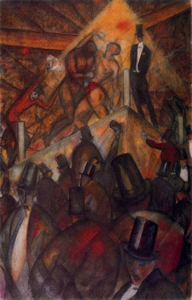Editor: Here we have Picasso's "Woman with Guitar and Piano" from 1911. The overlapping planes of oil paint make it seem almost like a puzzle, reflecting and refracting a domestic scene. At first glance, it feels rather… fragmented. How do you even begin to interpret something like this? Curator: Ah, Picasso. Well, imagine the world not as a fixed, single viewpoint, but as something seen from many angles simultaneously. This isn’t just a woman with her instruments; it's about capturing the essence of how we *experience* a space, a moment. Think of it as time turned into geometry. Editor: So it's less about depicting reality and more about... an idea of reality? Like a memory almost? Curator: Exactly! The curves of the guitar might overlap with architectural lines not because they literally do in reality, but because they coexist in the mind. Picasso wasn't simply painting what he saw, but how he felt, what he remembered, the echoes of sound and shape that lingered. Does it stir something in you, like the echo of a half-forgotten melody? Editor: Now that you mention it, I can see it. At first, I thought it was chaotic, but now I see there's a strange harmony there, a kind of… lyrical geometry? Curator: Precisely. It is lyrical geometry. Picasso invites us to piece it together ourselves, to actively participate in creating the image, just like the musician creating a song. Perhaps he is offering a new song, a fragmented glimpse of the eternal, accessible by guitar, piano and the eye of the curious. What if all of reality, is an abstraction yearning to be understood? Editor: I never thought of it that way before. I went in with the mindset that there was a definitive answer, but maybe it is okay if different minds put it together differently. Curator: Absolutely. Art, at its heart, is a conversation— between the artist, the artwork, and the viewer.