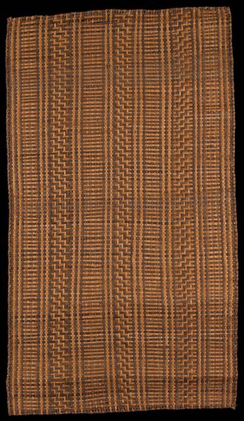 Editor: This is a bark cloth panel by the Mbuti people; the date is unknown. The artwork, made with textiles, is on display at the Minneapolis Institute of Art. It has some compelling geometric patterns. I'm interested in knowing more – how do you interpret this work? Curator: This piece compels us to think about artmaking as intrinsically linked to survival and community. Bark cloth production is deeply connected to the Mbuti's forest environment, a relationship threatened by deforestation and societal changes. Does seeing this object shift your perspective on what constitutes "art," considering its practical function and the cultural context from which it emerges? Editor: That’s a great point, that it’s tied to the environment and survival. I guess I think of art more as separate, not something as practical as clothing. So what do the patterns mean in terms of this function you mentioned? Curator: Exactly! It pushes us to challenge those assumptions. The geometric patterns aren't just decorative; they may encode knowledge, stories, or social structures significant to the Mbuti. Can we see the act of creation as a form of resistance, a way of preserving cultural identity in the face of external pressures? How do these patterns both conceal and reveal cultural meaning? Editor: Wow, so the act of creating the piece itself is part of retaining their identity. And the patterns almost work like a code! I guess I had not considered that, and that’s important to understanding this piece. Curator: It also encourages considering power dynamics when appreciating art from different cultural contexts. The display of this object in a Western museum inevitably shapes its interpretation, inviting us to ask, "Whose voices are amplified and whose are silenced?" This challenges us to approach such objects with respect for its community, with consideration to ethical representation, as part of a larger story. Editor: I hadn't really thought of all of the elements beyond the aesthetic to consider – it’s amazing to look at a piece with a deeper understanding of culture. Thank you. Curator: Absolutely. Engaging with art like this challenges us to consider the work, artist, environment and purpose of the artwork. It’s not just what’s on display, but who we are as viewers too!