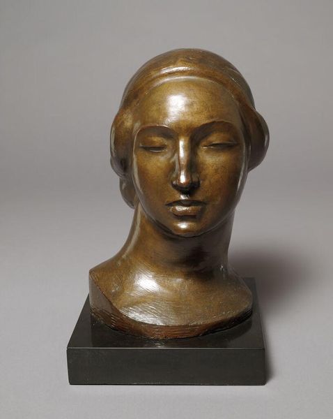 Editor: Here we have Richmond Barthé's "Head of a Boy," created around 1930. It's a striking bronze sculpture, incredibly smooth. What’s most interesting to me is the figure's closed eyes – it feels very introspective. What do you see in this piece, particularly within the context of the era it was created? Curator: Beyond the skillful sculpting, I see a work deeply embedded in the cultural and socio-political currents of the Harlem Renaissance. Barthé, a Black artist, was consciously creating images that countered racist caricatures prevalent at the time. The closed eyes you mention evoke a sense of interiority and dignity, rejecting the external gaze. Editor: So, it’s about reclaiming representation and challenging existing stereotypes through art? Curator: Precisely. Barthé, alongside other artists of the Harlem Renaissance, sought to depict Black individuals with complexity and nuance. The sculpture's form also echoes classical sculpture, thereby staking a claim for Black figures within the established art historical canon. The choice of bronze further elevates the subject matter, imbuing it with permanence and worth. Does this change how you initially viewed the work? Editor: It really does. I initially saw just a beautiful, quiet sculpture. But now I understand how politically charged it could be to create a work like this, centering Black humanity in such a direct way. Curator: Think about the power of art to participate in dialogues about identity and equality. Editor: This has totally reshaped my understanding. Thank you for offering new insights into how the Harlem Renaissance impacted art, politics, and society. Curator: My pleasure. Recognizing the social history inherent within the art truly transforms the viewing experience.