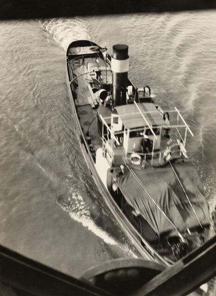 Curator: The striking tonal contrast in this vintage photograph, "Untitled (photograph of man and woman on boat pinned to wall)" by Lucian and Mary Brown, immediately evokes a sense of classic Americana. Editor: Yes, there's an undeniable allure to this image, though its charm feels almost staged. Is it a celebration of leisure, or perhaps a subtle commentary on idealized postwar lifestyles? Curator: Perhaps both. The composition, with the boat centered, and the dark frame around the image, draws attention to the subjects while simultaneously distancing them. The eye is drawn to the lines of the boat and the textures of the water. Editor: I find myself wondering about the narratives of these individuals. What does it mean to capture this type of image—a white couple on a boat—and fix it to a wall? Is it an attempt to preserve a particular vision of freedom and success? Curator: These are compelling questions, indeed. The visual economy of the piece invites further analysis. Editor: Agreed. It’s a reminder that even seemingly simple photographs can reflect complex social and historical realities.