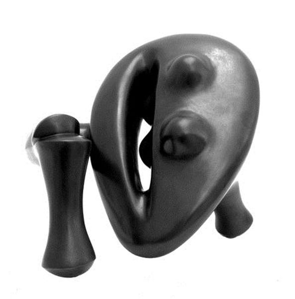 Editor: We’re looking at Louise Bourgeois’s “Janus” from 1968, a bronze and mixed-media sculpture. It has this weighty, almost unsettling presence. What do you see in this piece, in terms of its pure form? Curator: I find the biomorphic abstraction particularly compelling. Note the sculpture's curved, almost arch-like structure. It’s interrupted by that textured, almost floral mass in the center. How does that juxtaposition of smooth and rough textures strike you? Editor: It feels… contradictory. The smooth curves seem almost classical, but the rough patch is very visceral, like something organic growing out of metal. Does this contrast reinforce certain concepts in Bourgeois’s broader practice? Curator: Indeed. It's about exploring opposing forms to find their point of tension, that charged relationship that defines the work’s meaning. And observe how light plays across the surfaces, accentuating these forms. Editor: That's true. The light really emphasizes the sleekness of the lower forms, highlighting a tension, but a balance between them too. But, why do you focus primarily on formal qualities of tension, roughness, and light? Is there any particular meaning implied? Curator: As a formalist, I find meaning is produced through how she plays the relationships of those abstract and objective, pure observations of composition, shape, texture, scale. They carry the experience. It moves beyond the narrative and it’s focused on creating an aesthetic experience. Editor: I never thought about sculpture in such depth with such intensity! That definitely gave me some new insights into analyzing works like "Janus." Curator: And hopefully opened up avenues to explore similar relationships of visual structure to experience. Thank you for joining me.