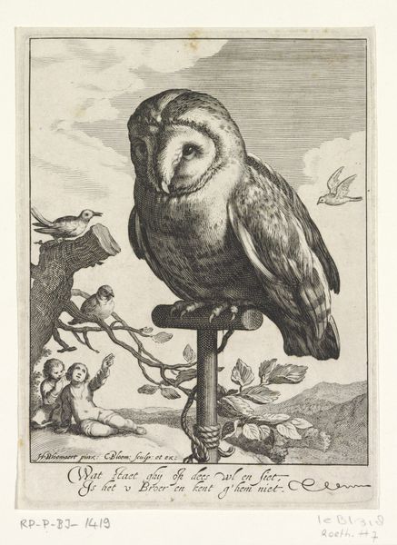 Nicolas Robert created this print of an owl and other birds using etching, a demanding and skilled process. Robert would have covered a metal plate with a waxy, acid-resistant ground. Then, using a sharp needle, he scratched away the ground, exposing the metal beneath. Immersing the plate in acid, the drawn lines were bitten into the metal. This painstaking process was repeated to achieve the desired depth and detail, showcasing Robert's mastery of the technique. The resulting image reflects this labor. Look closely, and you’ll see the precise, delicate lines, capturing the textures of feathers and the subtle variations in light and shadow. The technique allows for a high level of detail, and a fine-grained tonality that gives the print its distinctive character. Consider the social context: in the 17th century, printmaking was a crucial means of disseminating images and knowledge. Robert's skill was not just artistic; it was also a form of cultural production, making images accessible to a wider audience. Appreciating the labor and skill involved challenges the idea that “fine art” is somehow separate from craft.