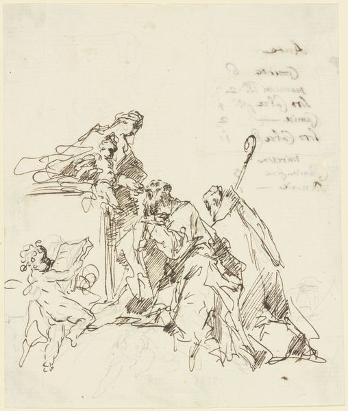 Editor: This drawing by George Du Maurier, titled "Our Drawing-room Pets," dates back to 1887. It looks like it was created as a print. What immediately strikes me is the caricature of this seemingly Australian man amidst a crowd of what I presume are British socialites. What's your interpretation of this work? Curator: It's crucial to see this work as a product of its time, deeply rooted in the context of British colonialism and the prevailing ideologies surrounding race and class. What do you observe in the depiction of the Australian man, "Kangaroo Jim"? Editor: Well, he is kind of sprawled out, with bare feet, while everyone else is quite buttoned up. The drawing is so detailed. Is that an indication that it might have a specific target? Curator: Absolutely. Du Maurier's work, published in "Punch," often satirized Victorian society. But, and it's a significant 'but', satire can reinforce existing power structures. Think about how "Kangaroo Jim" is presented—as a curiosity, an "idol" even. The very title, "Our Drawing-room Pets," implies ownership and exoticization. Do you see the potential for problematic representations here? Editor: Definitely. It seems like there's a tension between portraying him as a celebrity and simultaneously highlighting his "otherness" compared to the British elite. Curator: Precisely! And that tension is where the colonial gaze operates. The "civilized" drawing-room becomes a stage for displaying the "exotic," reinforcing a hierarchy. Considering this, how does this influence how we read the image today? Editor: It encourages a critical look. This drawing provides a complex view into a moment in history with race and the British empire. I wouldn't have approached it this way, if not for you. Thank you. Curator: My pleasure. Let's carry that lens of historical critique forward as we view art.