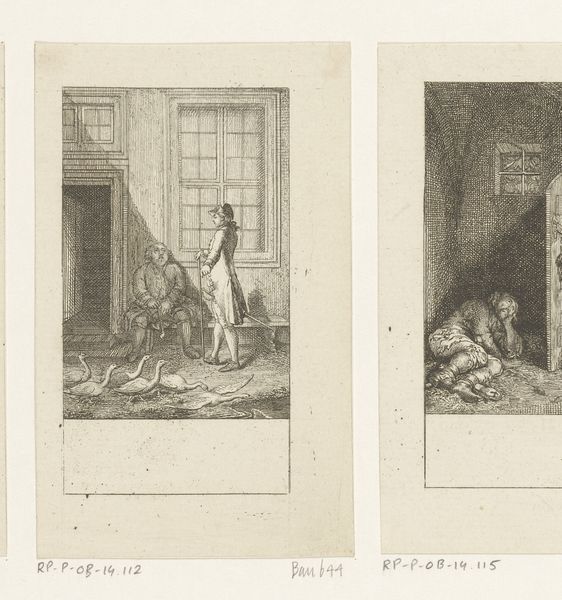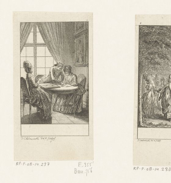 Editor: Here we have Daniel Nikolaus Chodowiecki’s "Arme vrouw met kind" or "Poor woman with child," made in 1778. It’s an engraving, so a print on paper. It's a small, intimate scene, but the details hint at a life of poverty. What strikes you about this image? Curator: Well, immediately I think about the social context of 18th-century Europe. Chodowiecki was a keen observer of everyday life, and this image offers a powerful commentary on motherhood and poverty. It’s not just a genre scene; it’s a statement. Look at the starkness of the room, the clothes hanging to dry. What does that say about the woman’s economic status? Editor: It’s pretty clear she's struggling. There’s a sense of confinement too, perhaps a lack of options? The detail in the light pencil work is impressive, almost too good for what seems like a social commentary. Curator: Exactly! The artist is using the composition to elicit a reaction. Notice how the woman and child are bathed in a softer light compared to the rest of the room. There’s a tenderness, a connection that transcends the squalor. Do you think that elevates the woman in some way? Editor: Yes, it almost idealizes motherhood despite the circumstances. Curator: I'd push that further and suggest that we have here an exploration of resilience of the bonds of kinship. This wasn’t merely about depicting poverty; it was about showing the strength and love that can exist even within it. It asks us to consider the social structures that create and perpetuate inequality. Editor: So, it's more than just a sentimental image of motherhood; it’s a critique of society? Curator: Precisely. And the beauty of art lies in its ability to hold both truths simultaneously. I appreciate Chodowiecki bringing such intersectional awareness to late baroque artwork. Editor: I hadn't thought about it that way before. Seeing it as a form of early social commentary definitely changes my perspective. Thank you.