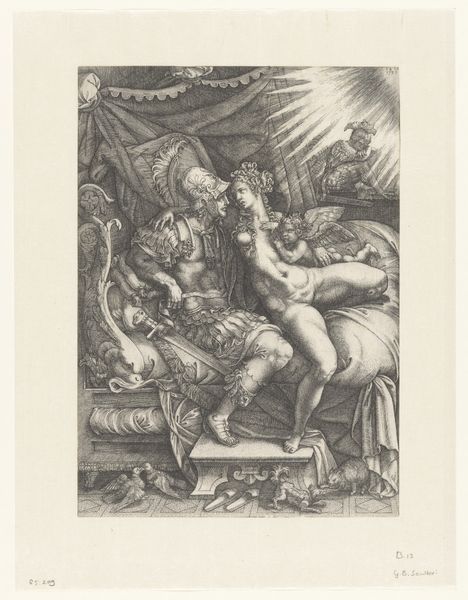 Giuseppe Scolari made this print, "Maria Magdalena in de wildernis", using etching. The dense hatching and cross-hatching creates areas of dark shadow, contrasting with the lighter, more sparsely etched areas that define the figures. Etching is an indirect method, meaning the artist doesn't directly incise the plate with a tool. Instead, a waxy ground is applied, the image is scratched into the ground, and then acid is used to bite the exposed metal. This allows for a freedom of line not possible with the burin in engraving. Scolari's print, with its dynamic composition, owes its atmospheric quality to the etching process. The print medium made images widely accessible, impacting the dissemination of religious and mythological narratives in society, but it also took away the hand of the artist. By understanding the labor and ingenuity that went into its making, we gain a richer appreciation for the complex interplay between artistic skill, material, and cultural context.