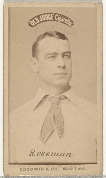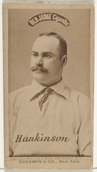 This card, made by Goodwin & Company around the late 19th century, features Stephen Arnold Douglas "Steve" Behel of the New York Metropolitans, and was included in packs of Old Judge Cigarettes. Printed on paper using photographic and lithographic processes, the card captures Behel in sepia tones. What's fascinating is how this object embodies the burgeoning commercial culture of the time. The tobacco industry used baseball cards as a marketing strategy, intertwining leisure with consumption. The card's small size speaks to its function as a collectible, mass-produced item, reflective of industrial capitalism. Its existence depended on factory production, cheap labor, and a growing consumer base. The image of Behel is, in a sense, a commodity, traded and consumed along with the cigarettes. Considering the material and context of this card broadens our understanding of art, connecting it to the social and economic forces that shaped its creation and distribution.