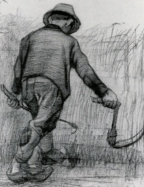 Curator: Jacob Ernst Marcus created this pencil drawing, "Kneeling Man Filling a Jug in a Ditch," sometime between 1784 and 1826. It's currently housed here at the Rijksmuseum. Editor: My first thought is how subtly melancholic it is. The pale tonality and downward gaze of the figure impart a sense of quiet resignation. Curator: It is indeed a genre scene rendered with incredible delicacy. The artist's choice of pencil allows for nuanced gradations of light and shadow. The type of pencil and the paper used give clues to the culture around drawing at the time. Was this drawing done in situ, or back at the studio, remembering a scene, for instance? The materials themselves are part of the story. Editor: Absolutely. And the jug itself— a classical form in this everyday context— evokes deeper, perhaps archetypal, connections to water, nourishment, and labor. Water is essential for every class in society, of course, but filling the jug also implies that water access requires work from common laborers. Curator: Yes, there's an undeniable class consciousness subtly woven in. This wasn't just about picturesque landscapes; it’s about showing the ordinary, the back-breaking labor involved in sustaining society, even for something as simple as water. Editor: And even the act of kneeling – a posture of deference or humility – amplifies this reading, making the symbolism more poignant. There's a spiritual connotation here, perhaps unintentional, that elevating hard, physical labor through the symbol of fetching for this necessary natural source will lead to further peace or goodness. Curator: You've got me thinking more about the role of fences, which in agricultural terms both mark ownership of lands and provide protective boundaries from animals. I can imagine that water was crucial for sustaining cattle and growing produce at the time. Editor: I concur that seeing this image through the context of ownership really illuminates what Jacob Ernst Marcus could be subtly communicating through it! What have we learned here today? Curator: The value in studying historical art through the lens of medium and class consciousness really unlocks hidden value.