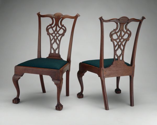 Curator: This is a Racket-back Sheraton side chair, made around 1800, now residing here at the Minneapolis Institute of Art. Editor: Ooh, sleek! My first thought is how confidently upright it stands. There’s something almost severe about it, despite the decorative flourishes. Curator: That severity comes from the Neoclassical lines so popular in late 18th-century American decorative arts. Think of it as a formal counterpoint to the fussier styles of the mid-century. Observe how the “racket-back,” gets its name, mirroring the shape of a tennis racket. Editor: Right, like a deconstructed lyre! And that palmette motif... it’s used so often, isn't it? It must symbolize something powerful? Curator: The palmette, originating in ancient Egypt, symbolizes rebirth and growth. It was favored for its formal symmetry and its evocation of classical ideals, linking the young American republic to those long-established principles. Consider its psychological impact; it was thought to instill virtues associated with those ideals—wisdom, order, and endurance. Editor: An everyday object imbued with symbolic weight... So it’s not just a chair. It’s making a statement, a silent sermon in wood! Who made this chair? Curator: The maker remains anonymous. While we can’t name a specific craftsman, the chair itself serves as a cultural artifact, representing the aspirations and values of its time. Its very design suggests it would have been placed in a room of status, signaling both taste and refinement. Editor: I like that…anonymous, yet so expressive. It carries the collective ideals, you know, almost unconsciously. Curator: Precisely. It demonstrates how objects are so much more than what they appear; they can embody cultural narratives and memories far exceeding their simple physical presence. Editor: Gives one a lot to consider simply before sitting down, eh? Curator: Indeed. Thanks to objects like these chairs we can ponder and preserve the nuances of human identity through time.