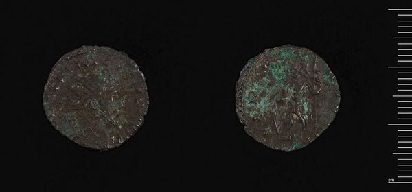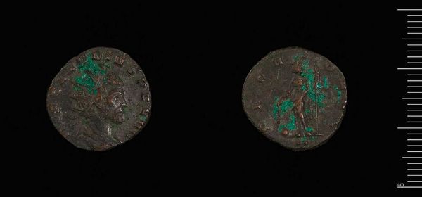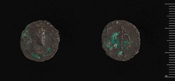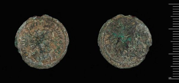 Curator: Here we have a bronze coin, identified as AE Gratian, bearing the name of the artist, Gratian, and currently residing in the Harvard Art Museums. Editor: Oh, it's gorgeous! It feels ancient and weighty with history; the patina gives it such character. I imagine it's been through a lot, bouncing in purses and pockets throughout time. Curator: Indeed. The materiality speaks to its function as a medium of exchange, reflecting the economic and social systems of its time. Mass production was facilitated by casting molds, and each coin represented a small fraction of labor. Editor: Thinking of hands touching this... Like a tiny, tangible link to the past. The portrait on one side, the figure on the other... each is a little story. It’s like holding a whisper of the Roman Empire. Curator: Absolutely. Examining the coin's distribution patterns and wear can reveal insights into trade routes, economic activity, and the extent of Roman influence. Editor: It makes you consider what small objects, everyday objects, will tell our story centuries from now. Quite humbling, really. Curator: Precisely. Such objects offer invaluable insights into the past, and perhaps a mirror to our present.