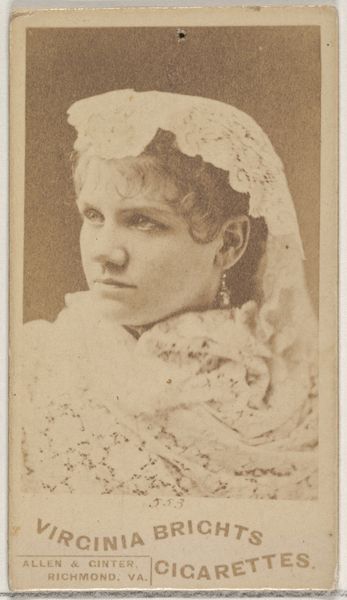 Card 897, Emma Carson, from the Actors and Actresses series was made by Allen & Ginter as a promotional item for Virginia Brights Cigarettes. These cards, popular in the late 19th century, offer a window into the cultural values and social hierarchies of the time. Actresses like Emma Carson gained visibility through these mass-produced images, but their representation was carefully curated to align with prevailing notions of femininity and beauty. While seemingly democratizing fame, these cards also reinforced the commodification of women's images. The actress is adorned with a delicate hat, pearls, and lace, reflecting an upper class aesthetic. Who was Emma Carson? What were her dreams, her struggles, beyond this idealized portrait? These images can prompt us to reflect on the complex interplay between visibility, representation, and the lived experiences of women in history.