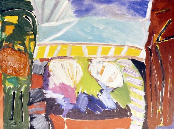Curator: Up next, we have Vilmos Aba-Novak's 1936 oil painting, "Farmyard." It's currently held in a private collection, a hidden gem waiting to be rediscovered by the wider art world. Editor: It strikes me immediately with its darkness, almost ominous despite the seemingly pastoral scene. The colors are muted, bruised even, with a flicker of red on that distant rooftop, like a warning flare. Curator: The red roof definitely commands attention. Aba-Novak often explored themes of rural life, imbuing them with a sense of drama, you see it here in the tension between light and shadow, those expressionistic brushstrokes shaping more than just scenery. The scene hints at more than what meets the eye. Editor: Precisely! The cattle are there, but they seem almost trapped within the thick darkness. It’s unsettling—the fence and the looming trees acting almost like bars. The composition seems less like a tranquil farm and more like an emotional enclosure, perhaps hinting at the turmoil brewing in Europe at the time, just before the war. Curator: It's hard to ignore the weight of history when you look at art from this period. Perhaps those darker tones are reflections of the looming political atmosphere, projected onto the landscape. And the house in the distance, like a haven or a trap. The artist blurs that distinction. Editor: I think the use of color reinforces that idea. That vibrant yet slightly acidic red contrasts heavily with the oppressive greens and blues—suggesting an interrupted sense of security, an unease that has seeped into what should be a safe, familiar place. Red, culturally linked to alarm and hazard, tinges our viewing with anticipatory angst, almost against our conscious desire. Curator: What truly captivates me is the ambiguity Aba-Novak manages to create. Is this a memory? A dream? A premonition? The painting refuses to give easy answers, inviting viewers to project their own narratives onto the canvas, to really dive deep. Editor: It's a powerful testament to how art can reflect anxieties without directly depicting them. A shadow of cultural and personal experience hangs over the barnyard itself, it's that unease which grants it timelessness. Curator: A perfect note to end on. I walk away from "Farmyard" thinking about the fragility of normalcy, about how beauty can co-exist with deep, unspoken dread.