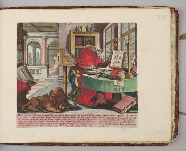 Curator: This is Anton Wierix II's depiction of Saint Augustine. The dimensions of the sheet are roughly 27 by 36 cm. What are your initial thoughts? Editor: The cherubic figure, the books, the bishop's finery—it's all quite deliberately staged with symbols of authority and wisdom, a very powerful iconography. Curator: Absolutely, this piece reflects the historical context of religious authority. Augustine's own writings have been used to justify power structures for centuries. Editor: And the books themselves, they act as symbols of codified knowledge, instruments to interpret the world. Curator: It's interesting how Wierix positions Augustine within this visual language, reinforcing his influence and legacy. Editor: Indeed, it all speaks volumes about the cultural memory surrounding Augustine. Curator: A very interesting work with layers of meaning. Editor: Definitely a lot to reflect upon!