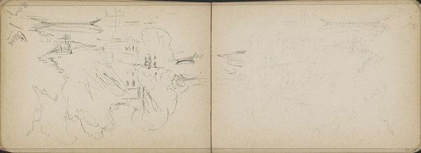 Curator: Here we have "Landschap bij Wyhlen," or "Landscape near Wyhlen," by Willem Cornelis Rip, likely from sometime between 1896 and 1898. Editor: My first impression is one of spontaneity. It has the light touch of a quickly captured moment, the softness suggesting graphite, perhaps? A fleeting record of place. Curator: Absolutely. These pages come from one of Rip's sketchbooks. We see his interest in capturing the landscape through the most direct means—essentially, through lines. Editor: I’m drawn to the material reality of a sketchbook. To consider the type of paper used, the portability, and the constraints it imposed on Rip's practice. The texture, the weight...they're all active participants in this piece. What does this immediacy reveal to us about the depicted space? Curator: I see the artist seeking to extract a feeling, the essence of this landscape. It could evoke a sense of calm, a stillness perhaps related to Romanticism? The sparse lines might indicate vastness but, being incomplete, almost invite the viewer to finish the picture. Editor: And the date scribbled near the edge - a marker, a stamp of labor, the time spent! That transforms this intimate record into more than just a collection of landscape elements. What stories do the fibers hold about the society and the labor process during its creation? Curator: Very insightful! To build on your thought, Rip wasn’t merely documenting but interpreting, encoding his emotional relationship with the natural world and possibly embedding it in a larger Dutch art history, perhaps hinting at a national identity tied to its landscapes. Editor: True, thinking about it now... it almost urges one to reach back into that society to understand that era, through such humble items! Curator: This landscape reminds me of the universal urge to connect with and understand the land around us. It is this longing to which this art speaks, by not actually speaking in the traditional sense! Editor: Right. Every deliberate sketch invites one to connect both materially, to how that art came to be, as well as personally and with a memory triggered by what it now evokes.