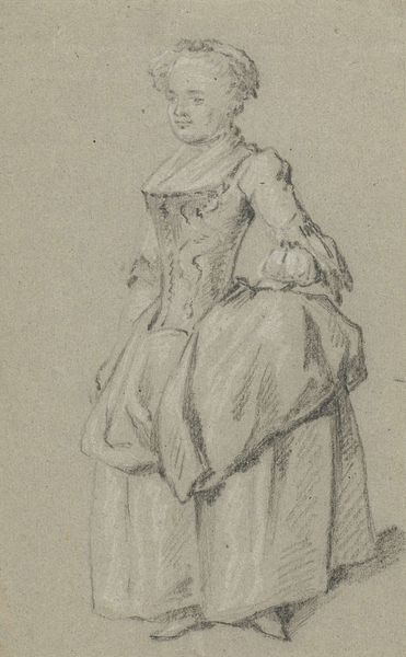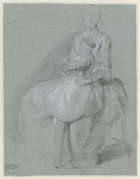 Godfried Schalcken sketched this "Seated Woman" using graphite, a medium that allows for delicate lines, somewhere in the late 17th century. The relaxed, almost languid pose of the woman, is a posture resonant with classical antiquity and the Renaissance. We see echoes of Venus, goddesses who possess an innate, self-assured ease. Her slightly averted gaze is a gesture common across centuries, from ancient sculptures to the Madonnas of the Italian Renaissance. This gesture, suggesting a deep emotional state, can be traced back through art history and seems to tap into a collective memory. Schalcken, whether consciously or unconsciously, channels this history, engaging the viewer on a visceral level. Ultimately, we see the cyclical return and reinterpretation of symbols. Each age imprints its own nuances onto these enduring forms. This reminds us that we are all participants in a continuing dialogue across time.