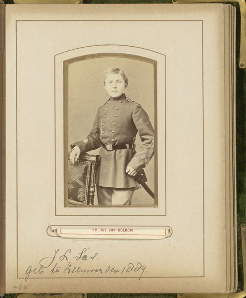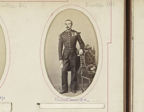 Curator: Ah, here we have an arresting gelatin-silver print attributed to Paul Emile Pesme. The museum identifies it as "Portret van een onbekende man in militair uniform," dating somewhere between 1856 and 1877. Editor: He seems… haunted, almost. Look at the stark stillness in his eyes. I immediately sense the weight of untold stories. The tones give it an ethereal quality, don’t you think? Curator: Indeed, a palpable melancholy permeates the portrait. But consider the historical backdrop. Mid-19th century Europe was rife with political upheaval and social change. This man, this soldier, represents the intersection of individual identity and state power. His uniform isn’t just clothing; it's a signifier. Editor: A beautiful cage, perhaps? The tight-fitting uniform, the decorations—they certainly convey authority, but at what cost? I can’t help but think about the human cost of militarization and the role of the military in upholding social hierarchies and, very often, oppressing marginalized communities. Curator: I see your point. Photography itself, especially portraiture, served as a tool for documentation but also social validation. Who gets their image taken, immortalized? It speaks volumes about power dynamics. The man's identity is unknown to us, highlighting how so many lives fade into historical anonymity while others are elevated. Editor: And his expression, isn't it a mask too? Did he truly consent to be photographed? What anxieties, fears, or hopes were hidden beneath his military posture? What was life really like for him during those turbulent years? Curator: These photographs can act as ghostly echoes inviting conversations about how wars impact individual consciousness, reflecting how conflict transcends geopolitical spheres. Perhaps it encourages a look beyond national interests. Editor: Precisely. This solitary image transcends one man's life; it echoes across centuries, an invitation to probe beneath appearances and discover the humanity enshrined beneath those stiff, starched collars. The technology may have been relatively new, but portraiture's intrinsic allure, its invitation to connect with a stranger's story, remains ageless.