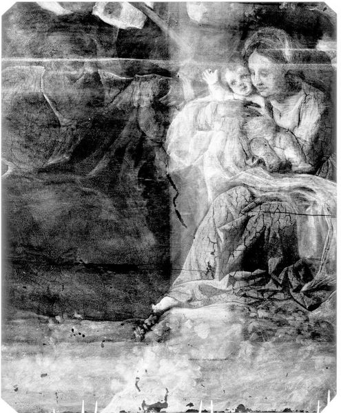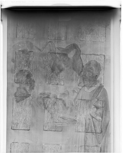 Editor: So this is an X-radiograph of "Adoration of the Magi (Copy)," after Hieronymus Bosch. It’s fascinating to see the figures this way, almost ghostly. What can you tell me about it? Curator: Seeing art through X-rays offers a unique perspective on power dynamics. The layers beneath the surface become visible, echoing the hidden histories of gender, class, and race often embedded within these works and their creation. What do you think this reveals about the narrative of the Adoration itself? Editor: It's like seeing the bones of the story... Were these hidden narratives intentional? Curator: Perhaps not explicitly, but art always reflects the socio-political context in which it's made, revealing implicit power structures and biases. The X-ray exposes not just the materials, but also the cultural layers. Editor: It makes me think about whose stories are told and whose are left unseen. Thanks! Curator: Indeed. It encourages us to question the dominant narratives and seek out marginalized perspectives.