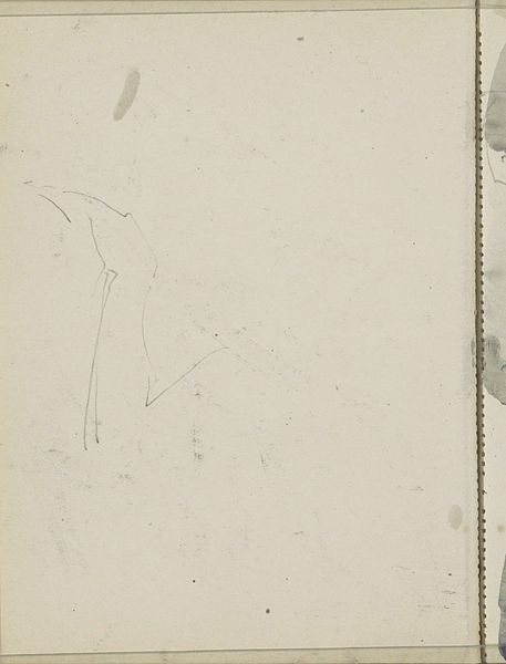 Curator: Breitner's "Horse Head with Bridle," created in 1907, is a delicate pencil drawing. What strikes you first about this quick sketch? Editor: The sparsity. There's an undeniable emptiness on the page. Just a single, hesitant sketch floating almost adrift. It really emphasizes the raw process of artistic exploration. Curator: I agree. Considering Breitner's involvement with Amsterdam's working class, I wonder if this sketch represents the work animals that toiled alongside laborers, bound and restricted. Editor: It’s also tempting to see this as Breitner grappling with the artistic process itself. Pencil drawings, like photography, offer an immediacy absent in oil painting. How does this sketch fit into his larger body of work and the social constraints acting on him? Curator: Interesting point! Breitner, straddling impressionism and early photography, frequently sought new media to capture raw urban reality. His reliance on photographic processes raises issues of authenticity versus reproduction, of mechanically assisted vision against traditional artistic skill. His sketches become evidence of process rather than solely end products. Editor: The bridle suggests control and subservience. But there is undeniable aesthetic intent at play here, which complicate Breitner’s role as mere documentarian. He elevates the mundane realities and raises important social concerns. Curator: Precisely. Considering the ready availability and relatively lower expense of materials needed to produce sketches, drawings also allow an interesting space to analyze Breitner's commitment to representing real world scenes of urban development available for circulation amongst lower income community members. Editor: And perhaps those communities were central to the production of sketches and photographs depicting social stratification during Breitner's time, creating avenues for protest art and a more equal distribution of artistic resources and skills. Curator: Indeed. By highlighting material concerns alongside its social underpinnings, "Horse Head with Bridle" becomes more than a sketch; it's an intersection of artistic, technological, and social realities, brought together with very available means. Editor: Yes, Breitner pushes us to question art’s ability to be objective in capturing history when power relations are often visualized and expressed even within casual sketchbook pages.