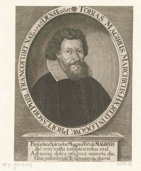 Editor: Here we have Johann Christoph Boecklin’s "Portret van Matthias Hoë von Hoënegg," created sometime between 1667 and 1709. It's an engraving, giving it this incredible detailed and almost photographic quality despite being made so long ago. I’m immediately struck by how formal and severe the subject appears. What can you tell us about its historical context? Curator: Well, considering the era and the medium, we should ask, who was meant to *see* this print, and under what circumstances? Engravings like this were often commissioned, produced, and circulated amongst intellectual and political elites. So, its function goes beyond mere likeness. Editor: So, it's not just about capturing the *appearance* of Matthias Hoë von Hoënegg? Curator: Exactly. Think about what details Boecklin chose to include: the inscription, the elaborate frame... They serve to construct and broadcast Hoë von Hoënegg’s social standing and theological authority. Note the use of Latin and its position alongside his portrait, meant to project wisdom and knowledge, but, crucially, also broadcast the artist’s connections to those same elites. Editor: That makes me wonder, were these portraits ever altered to serve particular political agendas? Curator: Absolutely! The circulation of images was a powerful tool for shaping public opinion and bolstering alliances. A flattering portrayal, distributed widely, could solidify someone’s image. Editor: That's fascinating! It gives a completely different dimension to understanding the artwork and its role in society. I was so focused on the aesthetic qualities that I didn't fully grasp its social purpose. Curator: Precisely! It is vital to remember that art does not exist in a vacuum. Editor: Thanks, I'll definitely keep the socio-political aspects in mind from now on!