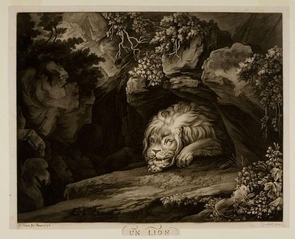 Curator: Rhein's "Tigress and Three Cubs," residing here at the Harvard Art Museums, evokes a powerful sense of primal tenderness. The image reads like a visual symbol of motherhood, the protective tigress a universal emblem. Editor: It strikes me as a rather sentimental image, actually. The stark contrast between the dark, almost menacing landscape and the vulnerable family creates tension. Curator: Precisely! The landscape reflects the harsh realities, while the tigress embodies enduring strength and nurturing, a potent blend of instinct and care. Note the subtle symbolism in the grapes. Editor: I see them, yes. Symbolism aside, how do you think the public reception of this image has been shaped by its display context, considering the exoticism associated with tigers in Western culture? Curator: Its initial viewers perhaps saw an exotic spectacle, but today, we might contemplate themes of endangered species, disrupted habitats, and the universal value of maternal bonds that transcends cultural boundaries. It becomes a symbol of environmental responsibility. Editor: Interesting perspective. It makes you wonder how future generations will view this image, given our evolving understanding of nature and wildlife. Curator: Indeed, its significance may shift, but the image's core symbolism – the protective mother – I believe, will endure.