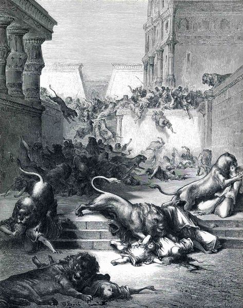 Antonio Ciseri painted “The Martyrdom of the Maccabees” with oil on canvas in the nineteenth century. Oil paint is a versatile medium, capable of rendering both the smooth, marble-like skin of the figures and the rough texture of the stone architecture. Ciseri worked with brushes, layering thin glazes to build up color and depth. The laborious process demanded skill and patience, aligning with the subject matter, the suffering and resilience of the Maccabees. The artist would have grounded his own pigments, carefully mixed with oil to achieve desired consistencies and effects. This hands-on approach, typical of the era, connects Ciseri to a long lineage of artists who mastered the craft of painting, and the value attached to that process. The traditional approach reflects a social context where art was highly valued for its technical mastery and ability to convey moral narratives. By emphasizing material and process, we recognize the deep labor involved, and the social importance placed on artistic skill. It is an alternative to a more formal reading of the scene.