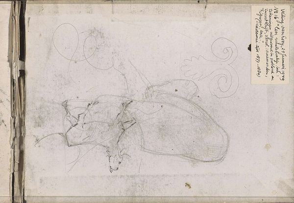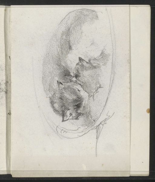 Editor: So, here we have George Hendrik Breitner’s “Twee studies van een baby,” two studies of a baby, from around 1880. It’s a pencil sketch, pretty minimal. It kind of gives off that feeling of a fleeting moment, a quick observation. What stands out to you when you look at this? Curator: It’s interesting you say fleeting because that's precisely the energy I get, too. But it's more than just that initial spark, isn't it? Breitner’s not just capturing the baby, but a feeling *of* babyhood. Like grasping at fog – that essence of ephemeral newness. It reminds me of my own niece… remember the endless sketchbooks all us art students filled? Quick gestures, searching lines... Do you see that here, that search for form? Editor: Absolutely. You can see him kind of feeling around for the right lines, especially in the upper study. It's less defined, more exploratory. The lower one feels more resolved, but there's still a rawness. It’s cool he kept the initial sketches. Curator: Exactly! He could have erased those "mistakes," smoothed it all out. But no, he left them! That reveals so much about process, doesn’t it? Maybe he thought "these captured starts have some innate sense." And that connects me! Like stumbling in the dark for a light switch—you remember what your hands touch more than how bright the light is *after.* Do you relate to his lines, those false-starts in creation, in that kind of light? Editor: I never really thought about it that way before. The imperfections becoming the story itself. Makes the whole thing feel a lot more human. Thanks! Curator: It is human. Thank YOU for opening up how he shows us humanness in these glimpses! These aren't errors, but traces of a mind thinking, seeing, *feeling*. And now we feel along with him.