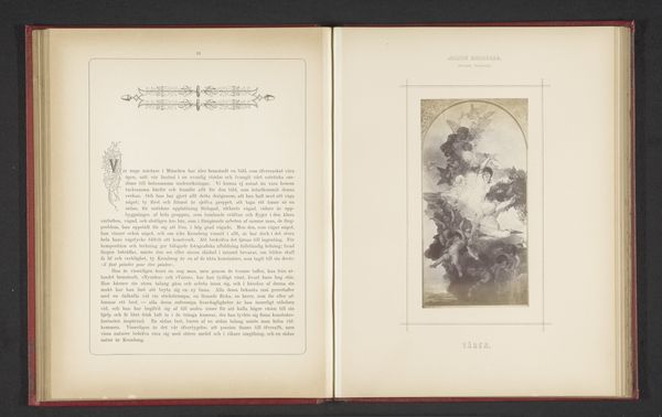 Curator: This is a photographic reproduction of a painting by Peter Nicolai Arbo, created before 1878. The original work depicts a young man on horseback, set against a dynamic backdrop. Editor: My first impression is that the romanticized image conveys power and a sense of liberation; there's an interesting tension created by what appears to be movement within the still image. Curator: The image certainly draws upon romantic themes, but I am immediately drawn to the physical production of the print, and consider the industrial means through which this image would have been circulated and consumed during the late 19th century. This challenges our notions about "high art." How did mass production impact perception and reception? Editor: Agreed; yet the core symbolic power transcends the mode of distribution. Consider the white horse, a long-standing symbol of purity, nobility, and victory. Combined with the youthful rider, draped heroically, the image suggests the ideals of leadership and heroic virtue— a continuity of symbolism across centuries. It's striking how effective these core icons remain. Curator: That heroic veneer is certainly present. However, let’s consider the social circumstances within which the print was created. Prints made art accessible beyond the elite. It would be important to examine the historical demand for images like these in the Victorian Era, considering societal values regarding class, gender, and national identity. How did images like this enforce specific narratives? Editor: Those Victorian Era values are definitely a crucial factor. What interests me more, though, is how easily a contemporary viewer recognizes these motifs despite those shifts. We are still receptive to the archetypal image of a young man and his noble steed— a cultural inheritance passed down through generations. How much has visual literacy really evolved? Curator: The continuous existence of such imagery, repurposed for other functions, supports your statement, and the image serves as a fascinating mirror to see how historical ideas transform in their visual culture. Editor: Indeed. Ultimately, understanding the endurance of those motifs adds profound depth to experiencing art. Thank you.