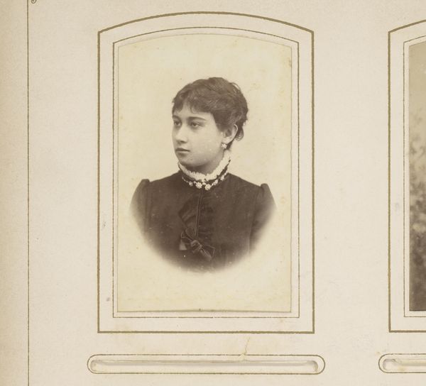 Aaron Gerschel captured this woman's portrait in a photograph of modest dimensions. The high-necked dress and simple buttons signal a certain restraint, yet the puffed sleeves speak of burgeoning fashion. This subtle interplay between modesty and display is a recurring motif in portraiture across centuries. We see echoes of it in Renaissance depictions of noblewomen, where rich fabrics are tempered by pious gestures, or even in ancient Roman sculptures where draped clothing hints at the body beneath, a dance of revelation and concealment. Consider the button, an object with a rich history. Once a mere fastener, it became a signifier of status and control, evolving from simple necessity to a marker of social standing. Think of the tightly buttoned uniforms of military leaders, a symbol of their authority, and of the complex psychological dynamics that shape our self-presentation. The recurring cyclical theme: the tension between what is shown and what is withheld.