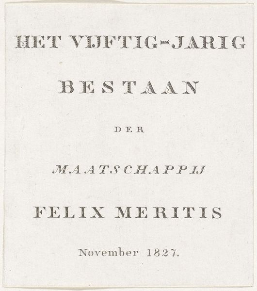 Editor: Here we have a printed death notice, "Doodbriefje van jonkheer Jan Evert Lewe van Aduart," created in 1832. It's typography on paper, an engraving I believe, and it strikes me as a very formal and public declaration of private loss. How do you interpret this work? Curator: This "Doodbriefje," or death note, operates as both a personal and a political statement. It announces not only the passing of Jan Evert Lewe van Aduart but also his social standing as a Jonkheer and his military service, including being a Commander and Knight. Consider this within the broader social hierarchy of 19th-century Netherlands. The deliberate mention of titles and military accolades speaks volumes about the values upheld by the elite, linking personal identity inextricably with service and nobility. It raises questions about who has the right to have their story told and remembered in such a public manner. Who is afforded such visibility, and who is silenced in the archives of history? Editor: So, it's about more than just remembering someone who died? Curator: Precisely. This seemingly simple announcement serves as a cultural artifact reflecting power dynamics. Notice how “Geen Rouwbeklag”—“No Mourning”—is stated at the end. This implies a stiff upper lip, a stoic acceptance of loss deemed fitting for someone of his station, perhaps also pointing to familial or financial situations. Do you think that sentiment resonates differently today? Editor: Absolutely, it’s so different from how we publicly express grief now. Thinking about this object forces you to really unpack the historical context around grief, social status, and who gets remembered and how. Curator: Indeed. Examining even seemingly minor pieces like this lets us challenge dominant historical narratives, decentering traditional perspectives, and creating space for broader, more inclusive interpretations of the past.