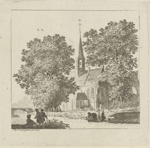 This print, "Gezicht op de kerk van Maarssen," depicts a Dutch church in a detailed, anonymous engraving. Images of churches like this one played a crucial role in shaping local identities and civic pride in the Dutch Republic. The church isn't just a religious building. It's a symbol of the community's values, its place within the broader social and political landscape. The figures around the church suggest the social life intertwined with this architecture. The presence of both well-dressed individuals and commoners hints at the church's role in uniting different social classes. To fully understand this print, we might delve into local archives, church records, and period maps. These resources can reveal how this church functioned within its community and how images like this one contributed to its significance. Art is not created in a vacuum, but instead, is shaped by social and institutional forces.