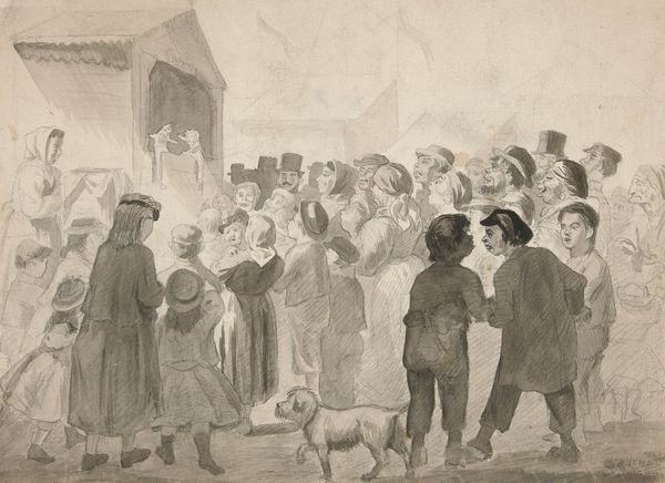 Vasily Perov created this poignant pencil sketch, “Gogol is supported by the figures of his works to the grave,” in nineteenth-century Russia. Perov was a founder of the “Wanderers,” a society of artists who broke from the academic style to depict the realities of Russian life and critique social injustices. This sketch, a study for a larger painting never realized, imagines the funeral procession of Nikolai Gogol, a celebrated writer known for his satirical and often dark portrayals of Russian society. Here, Gogol is metaphorically supported by the very characters he brought to life in his stories. The mournful assembly embodies the weight of Gogol's literary legacy, and hints at the real social conditions he unveiled through his biting satire. Perov, through his art, often gave voice to the marginalized. In the wake of the great writer's death, he offers a powerful commentary on the artist's role in society and the lasting impact of their work.