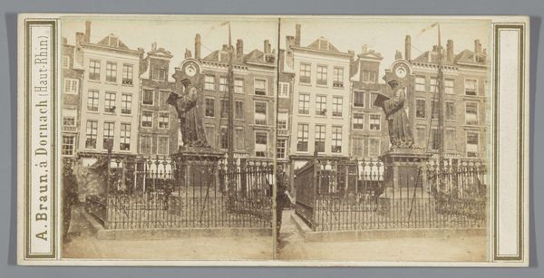 This stereoscopic card depicts the Standbeeld van Ary Scheffer in Dordrecht. Though the photographer is unknown, the process used – stereoscopy – was popular in the late 19th century. A double image, taken from slightly different angles, is mounted side-by-side on a card. When viewed through a special viewer, the two images merge into a single, three-dimensional picture. The statue itself is likely bronze or stone, materials traditionally associated with public monuments. These were often created through labor-intensive processes like casting or carving, requiring skilled artisans. Stereoscopy, meanwhile, was a relatively accessible technology, allowing for mass production and distribution of images. The combination of these two processes speaks to the democratizing potential of photography. While the statue commemorates a notable figure, the stereoscopic card makes this monument accessible to a wider audience, challenging traditional notions of art and its consumption. It reminds us that even seemingly straightforward images are deeply embedded in social and technological contexts.
