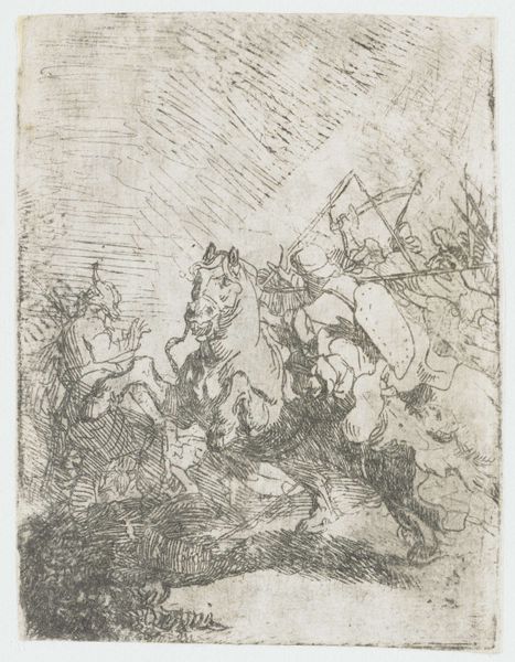 This etching by Anthonie van den Bos depicts cherubic children, each representing a season through symbolic attributes. The most prominent motif is the garland of flowers, held by one of the children. This is reminiscent of Flora, the Roman goddess of springtime, and is linked to themes of renewal and fertility. The garland motif appears across art history, from ancient Greek festivals to Renaissance paintings. The use of flowers as symbols has changed over time, but its connection to beauty and transience has remained constant. Psychologically, the garland taps into our collective memory, evoking feelings of joy, celebration, and the cyclical nature of life. The association between childhood and nature stirs something primal within us, engaging viewers on a subconscious level and triggering a deep emotional connection. Thus, this cyclical nature of renewal and hope is subtly embedded in this simple image.