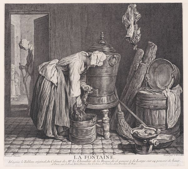 Curator: "A Country Store - Getting Weighed," a wood engraving by Winslow Homer from 1871. I’m struck by how this print seems to capture a moment of everyday life. What do you think is going on in this print? Editor: It seems like a snapshot of women in a store, possibly getting weighed. The print's detailed lines give a sense of the textures of their clothing and the merchandise. As a Materialist, what particularly grabs your attention in this work? Curator: As a materialist, I look beyond the simple depiction and consider the means of production. This isn't just an image of leisure, it is an object created with specific tools through industrial processes to create multiple, affordable, images. The wood engraving, the ink, the paper; these materials speak of a developing industrial era in America, aimed at circulating scenes and ideas more widely, connecting consumer culture to gender and class distinctions through affordable commodity circulation. Think about how many hands were involved in just creating this print—from lumberjacks providing the wood, to artisans actually etching the design. How does the material nature of this image influence your understanding of it? Editor: That's a really interesting perspective. I hadn't thought about the lumberjacks or the etchers; I guess I saw it as simply an image, without reflecting on the labor and materials behind its creation. Do you think the mass production of this print influenced how these women and their consumer practices were perceived at the time? Curator: Absolutely! The ability to mass produce images like this contributed to constructing and circulating certain social expectations, for example, relating to feminine roles. These depictions shaped and reinforced how individuals perceived their places within society, and contributed to the demand for particular goods or ways of living. And prints like these weren't just about recording reality; they were actively shaping it by setting benchmarks of beauty and consumer desire within a quickly changing social landscape. It really prompts you to think about the manufacturing of gender through imagery, doesn't it? Editor: Definitely! Looking at art through this material lens offers a much deeper understanding. I’ll be sure to keep that in mind moving forward! Curator: Glad I could shed a new light, remember that artistic expression is always interwoven with society!