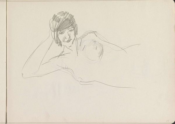 Isaac Israels sketched this reclining nude in pencil. The lines flow loosely, almost as if capturing a fleeting impression. The use of line to define form is evident, but more striking is the tonal variation achieved through hatching and shading. Israels' emphasis on the play of light and shadow is palpable. Notice how the shading defines the contours of the figure, creating volume and depth. The lack of detail and finish adds to its modernity, but also draws our attention to the formal elements, like how the composition seems to be more concerned with exploring the effects of light rather than any idealization of the human form. The sketch is not merely a representation but an exploration of visual possibilities. It invites us to look beyond the subject matter and appreciate the formal language through which the artist expresses his vision.