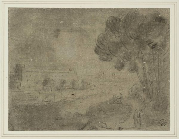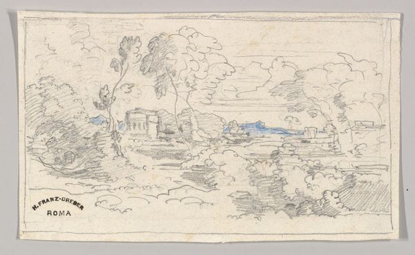 Curator: This unassuming work, "Sketch from Nature," comes to us from the hand of John Varley, an artist born in 1778. I find the way he's used pencil on paper quite striking; it's such a direct, almost raw engagement with the landscape. Editor: It feels incredibly ephemeral, doesn't it? Like a fleeting moment captured. It makes me think about the accessibility of landscape to marginalized people. Did Varley, through this medium, intend to democratize landscape art? Curator: That's a fascinating point. Pencil sketches allowed for speed and portability, a way to record observations directly from life. It speaks to a shift in artistic practice, moving away from formal studio work toward a more immediate engagement with the world. Editor: And in whose world? This is not necessarily a neutral representation of "nature". The inclusion of what seems to be a manor house, reminds us that even in the most bucolic scene, class and land ownership are always present. Curator: Absolutely, the very act of sketching, the choice of subject matter, and the selective framing all reveal the artist's perspective, shaped by his social context. Editor: It gives me much to consider; I'll never look at a "simple" sketch the same way. Curator: Indeed, it reveals complexities even in apparent simplicity.